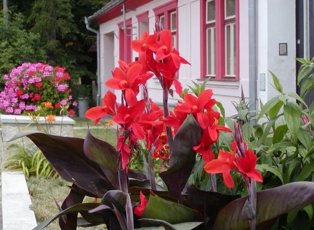 Канна "Америка" – это великолепное декоративное растение, которое станет настоящим украшением вашего сада. Этот сорт канны отличается крупными, ярко-красными цветами с легким оранжевым оттенком, которые привлекают внимание и создают атмосферу экзотики. Листья растения – широкие, глянцевые, насыщенного зеленого цвета, что придает кусту дополнительную декоративность.
