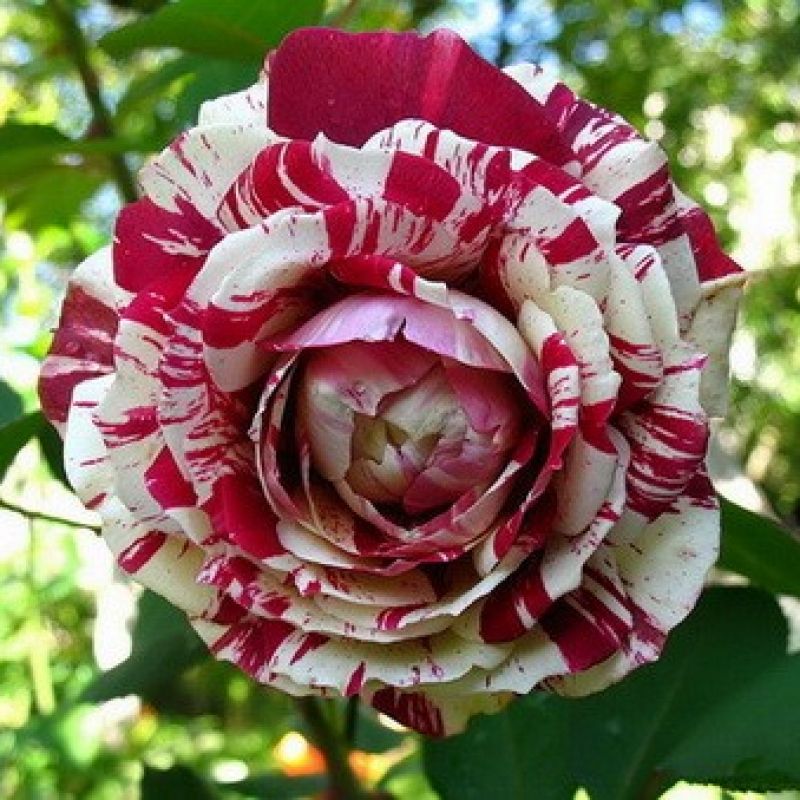 Цветы Хулио Иглесиас поражают своей необычной окраской: белые и кремовые полосы на насыщенно-красных лепестках создают эффект мраморного узора, который привлекает внимание и восхищает своей элегантностью. Бутоны крупные, махровые, достигают диаметра до 8-10 см, что делает их идеальными для создания эффектных букетов и композиций.